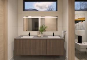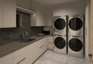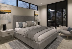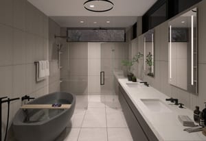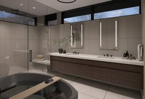 The primary suite is located on the main level, offering privacy, ease of living, and direct access to outdoor space. The spa-inspired primary bathroom features a steam shower and soaking tub, creating a retreat-like environment. All additional bedrooms are en-suite, providing comfort and privacy for both guests and family.