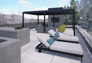 The residence offers approximately 3,438 square feet of fully heated outdoor living space designed for true four-season enjoyment. Multiple terraces and gathering areas span every level, culminating in a nearly 1,000-square-foot rooftop deck overlooking the Gore Range and Vail Village, offering prime views of skiers descending Vail Mountain. A private hot tub is thoughtfully positioned for relaxation after skiing while still capturing mountain light and views.
