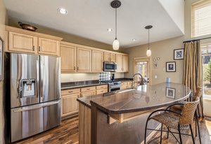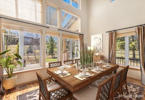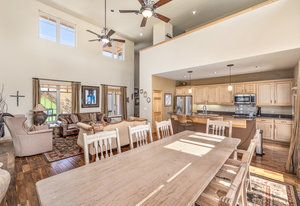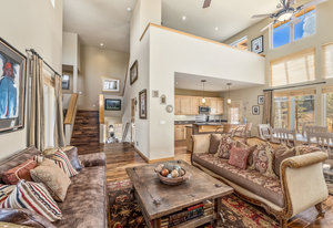 Located at the end of a quiet cul-de-sac in Eagle Ranch, this 5-bedroom, 5.5-bath home offers generous space and stunning golf course and mountain views. Enjoy seamless indoor-outdoor living with multiple porches and balconies that take in views in three directions — including a patio overlooking the 11th hole straight toward the iconic New York Mountain. A huge deck off the kitchen is perfect for dining al fresco or hosting under the stars. Inside, you'll find a bright family room, a cozy loft, a spacious rec room, and the comfort of air conditioning throughout. An oversized 3+ car garage rounds out this exceptional property — offering everything you need for mountain living at its best.