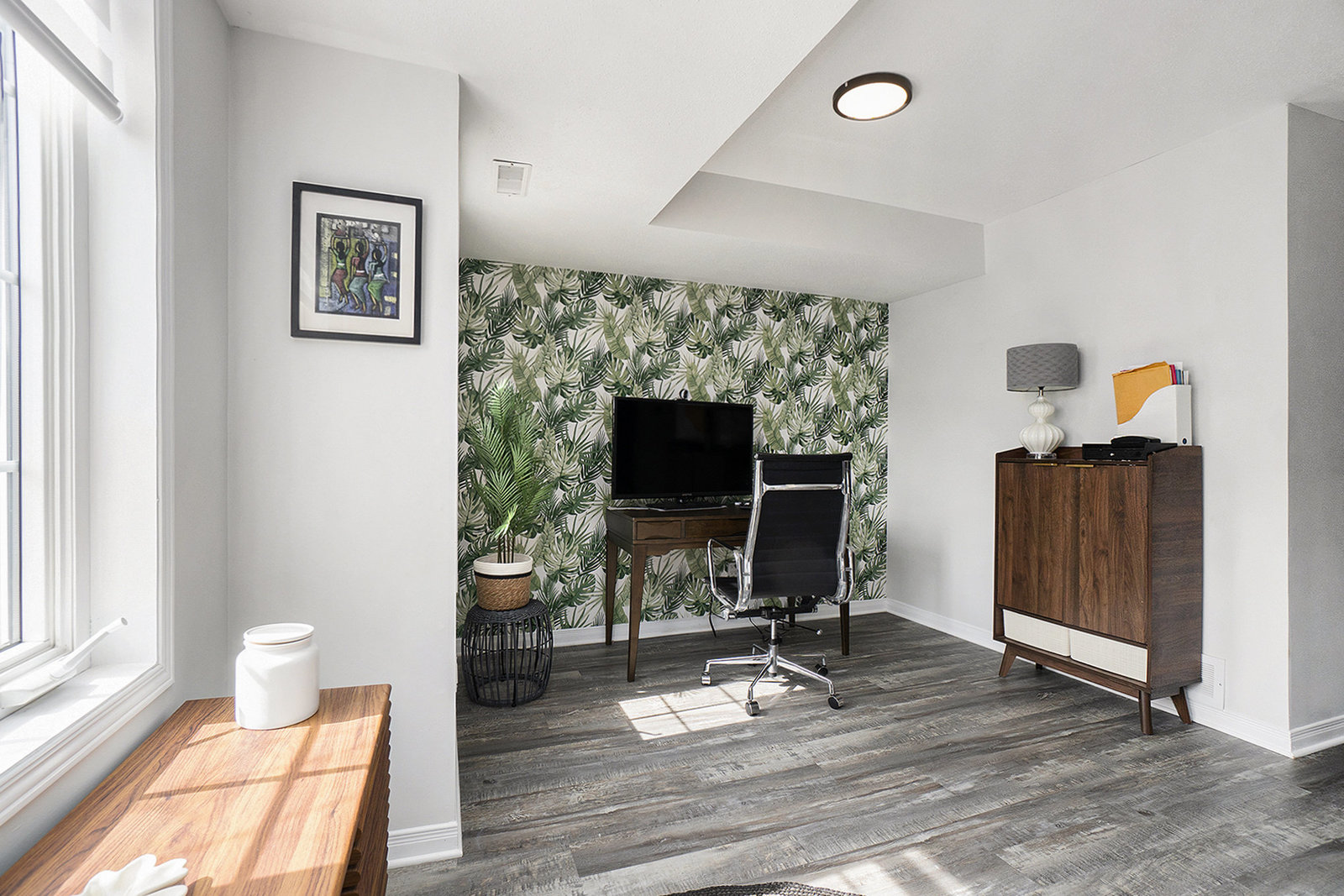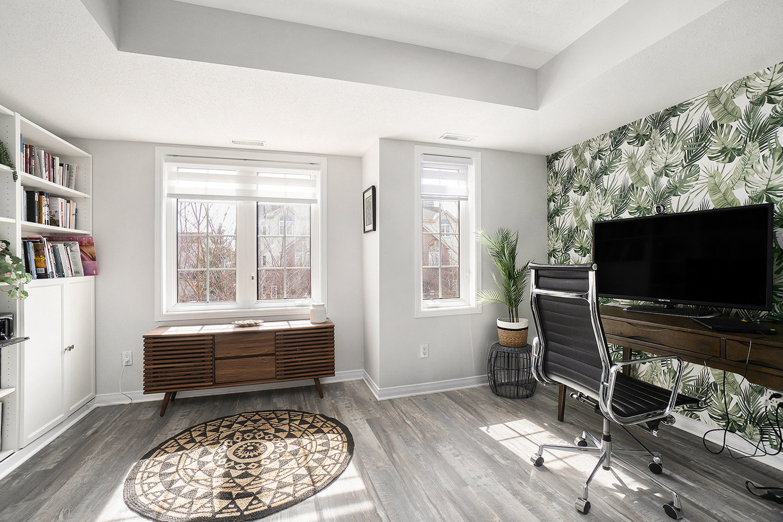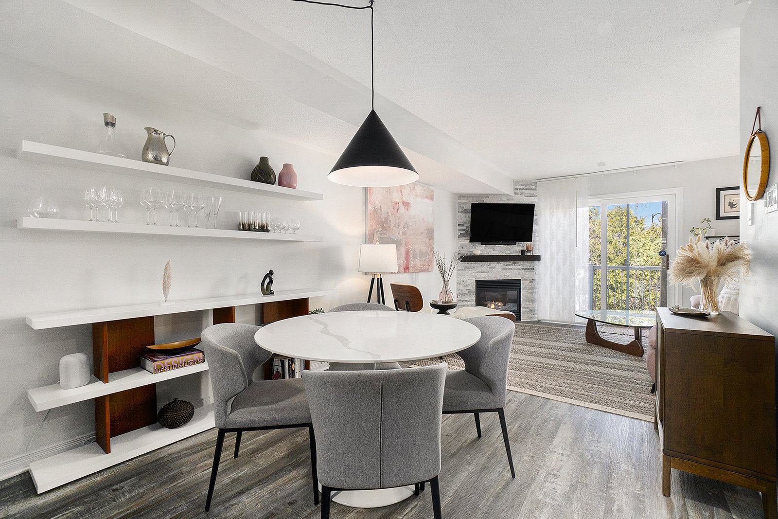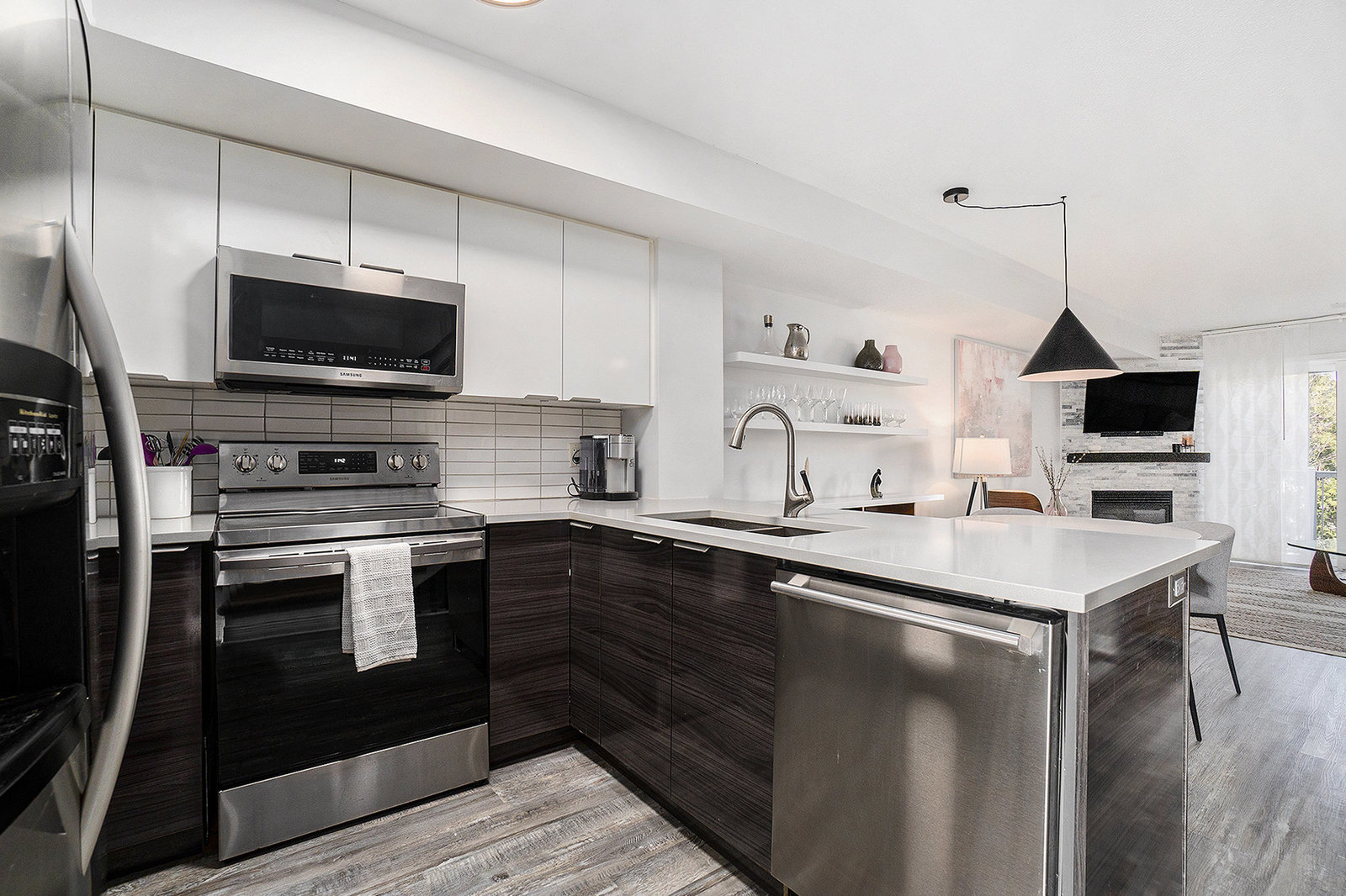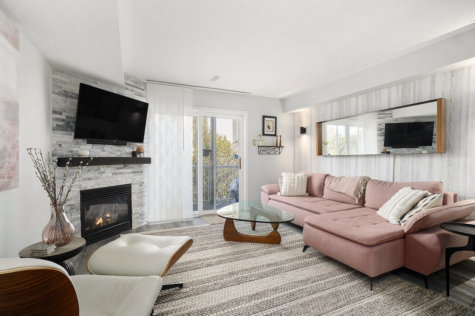 Step into open-concept living spaces that are bright and inviting, boasting luxury vinyl plank (LVT) wood flooring for durability and style. The living room is complemented by a cozy corner gas fireplace with custom stone tile and ideal for relaxing evenings, and easy access to your private balcony. The sun-filled den is the perfect home office or potential third bedroom.