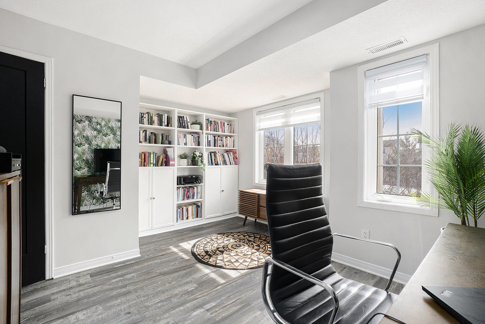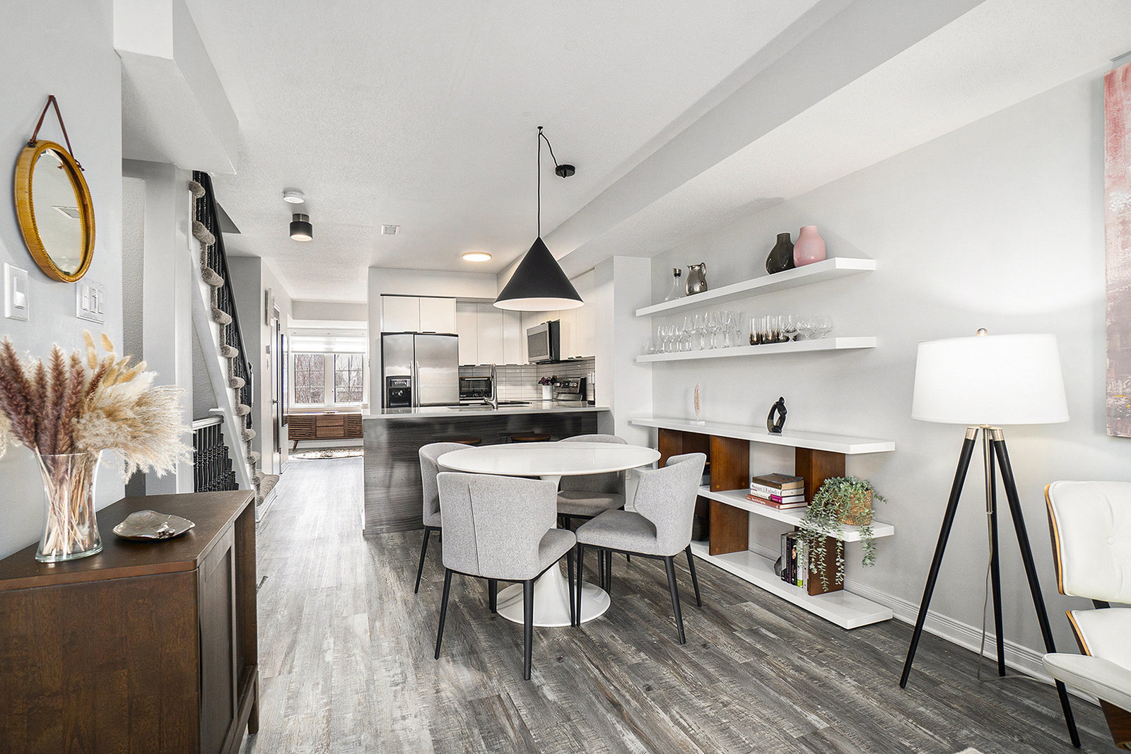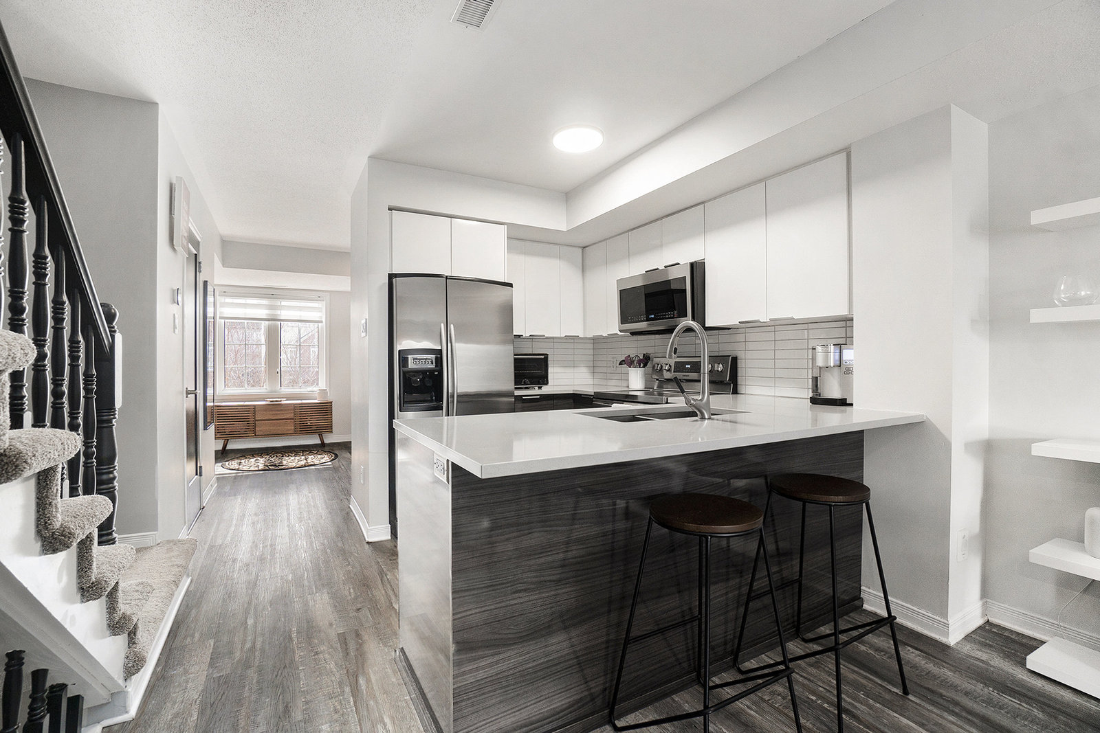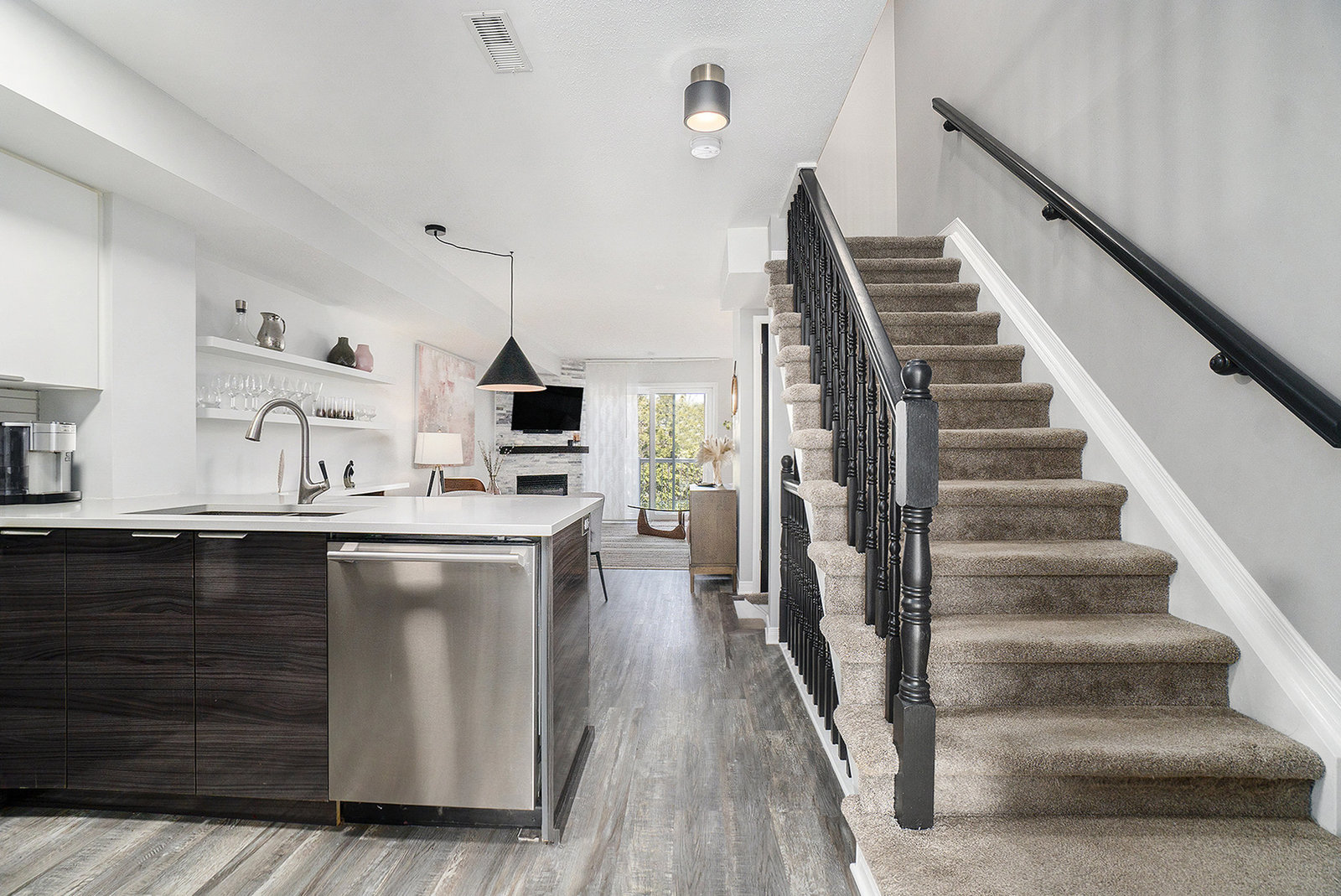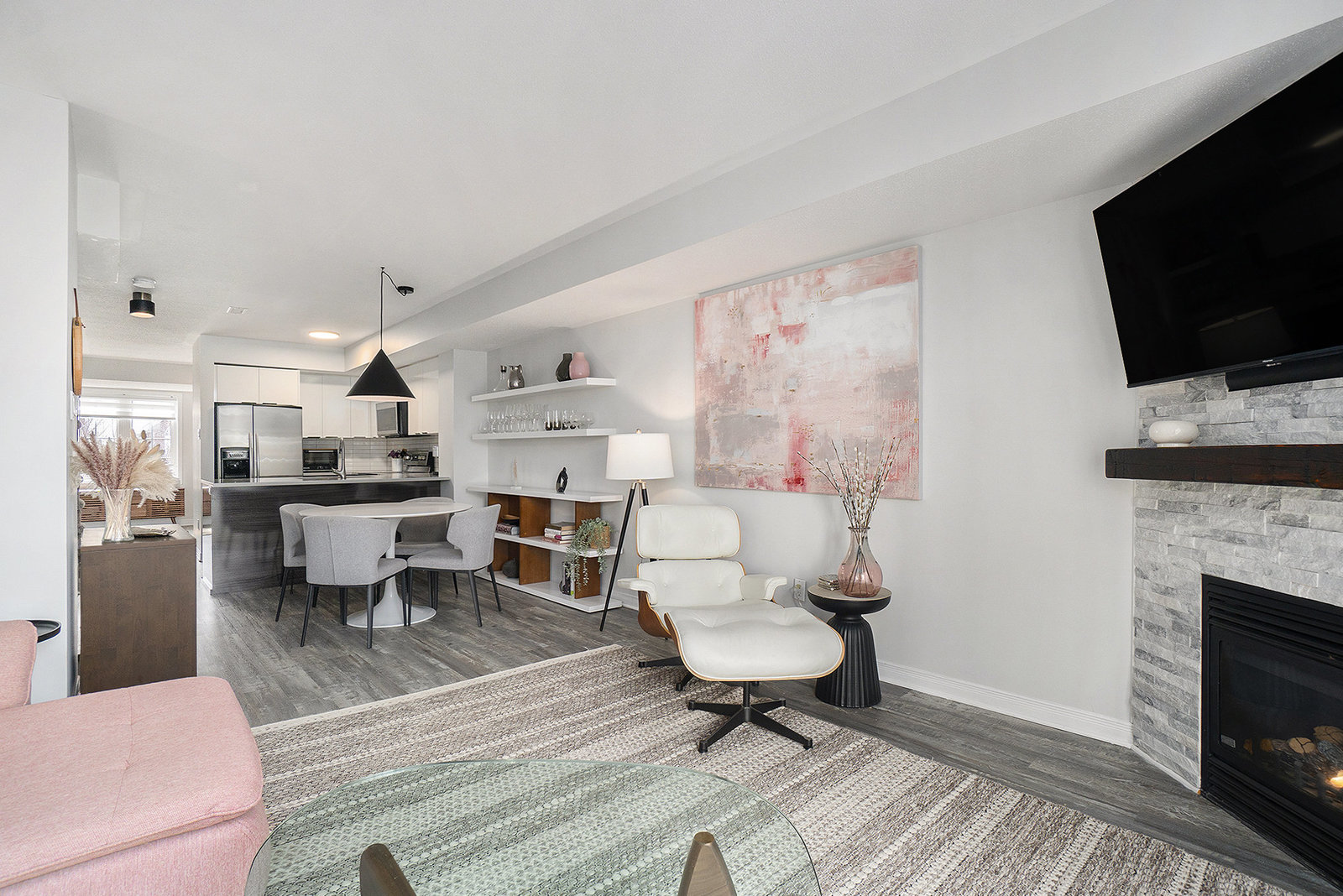 Welcome to this stunningly modernized 2-bedroom plus den, 1.5-bathroom upper unit! Ajacent to Ken Steele Park and ideally situated near Highway 417, Cyrville LRT station, Aviation Parkway, St. Laurent Shopping Centre, grocery stores and more—this location offers the perfect blend of accessibility and lifestyle. This stacked condo townhome with parking just outside your door has been thoughtfully updated with high-end features throughout, transforming it into a contemporary haven.