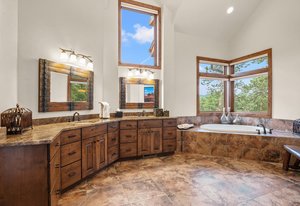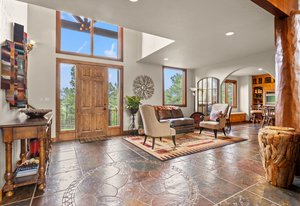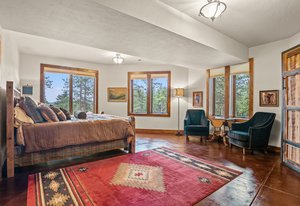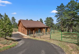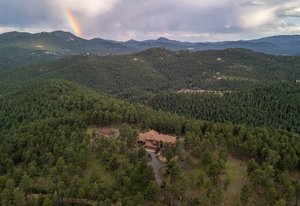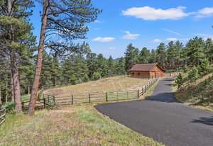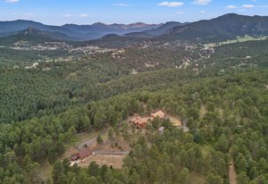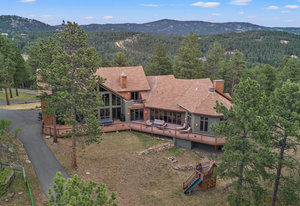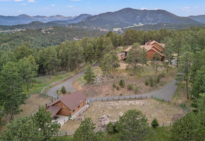 Words, alone, cannot capture the true beauty of this amazing property. The Estate at Eagle Crest sits on 10.65acres in a little-known enclave of luxury properties called Pinewood Vista, tucked within a picturesque setting of meadows and ponderosas on the backside of central Evergreen and has never been on the market fully complete, until NOW. Over 75 photos, floorplans, 3D Matterport, and specialized video all can be seen using the virtual tour link. This Andy Ades build from 1995 was only half finished in 2012 when the sellers saw the potential and purchased the home. Today, you will marvel at this extraordinary 6-bedroom, 6 full bathroom, 10,119sf home. Features of the home include: Two primary suites (main floor and upper floor), high quality elevator to all 3 floors, chef's kitchen, stunning great room with a wall of windows-nearly 28ft of “Nana Wall” style doors-custom iron work, a wrap-around composite deck, snowcap views of Mt Rosalie, main floor office, an octagon den adorned with a massive antler chandelier, a magical kid's playroom includes a climbing wall and slide from the upper level, an entertainer's recreation room complete with a copper enhanced bar-all the essential appliances-dining area-family room-plus an ideal theater room that includes stadium seating with powered recliners-surround sound-flat screen TV-custom log bar at the rear. Nice to haves include: 2 mudrooms, 2 laundry areas (main floor and upper floor), 4 gas fireplaces, 3 furnaces, 3 air-conditioning units, 6 zone heating/cooling, Generac backup generator, natural gas connection, radon mitigation system, multiple storage rooms, private gate. Finally enjoy an equestrian set up that includes a 2-stall barn with metal walls-rubber matting-auto waterers-hay loft-2 large garage doors-tack room-compost toilet, an exterior washing area, large arena, 3 fully fenced pastures with plumbing for troughs at each. This is truly a one-of-a-kind property that can be purchased fully furnished.