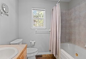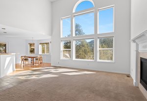 Inside, this home features four bedrooms, a bonus room on the lower level, and four well-appointed bathrooms, ensuring convenience for family and guests. Designed with a partial open-concept layout, the living areas offer both defined spaces and a seamless flow for relaxation and entertaining. Natural light streams in from a wall of windows, highlighting the home's inviting atmosphere and picturesque surroundings. Additionally, the home is handicap accessible, with the lower level designed for ease of mobility and functionality.
