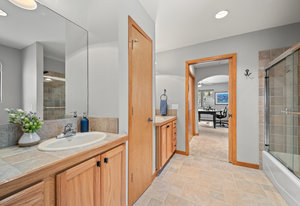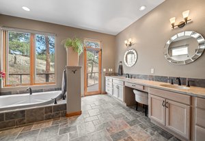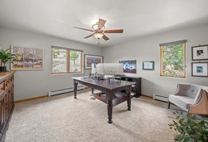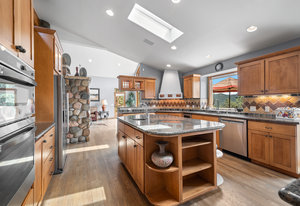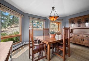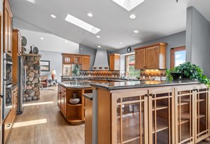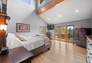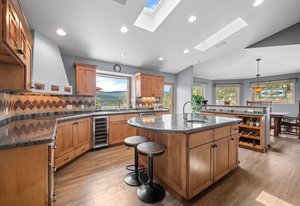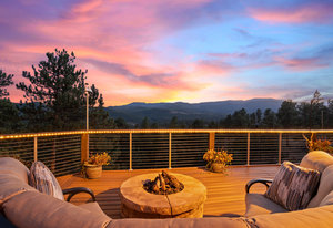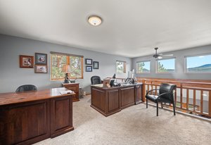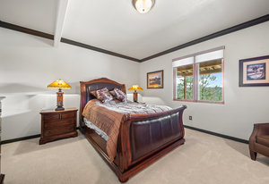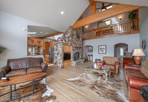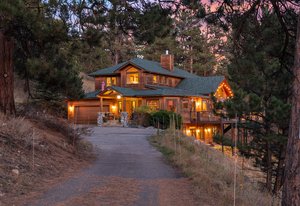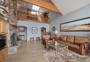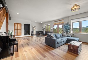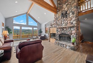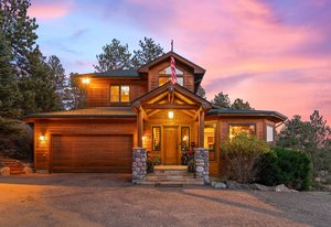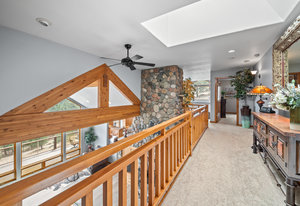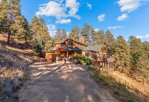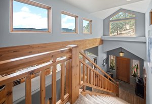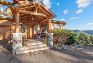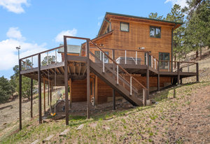 This is a Special Place to come home to and enjoy the Privacy and Mountain Serenity. The two acres are at the end of the Cul-de Sac, providing a quiet refuge. This house is Positioned at the Crest of the Property, looking out at the soothing rolling Mountains Views and surrounded by nature. The driveway is very gentle and access to town is about 10 minutes away. The Architecture of the home, with the Cedar siding and Log accents, integrates with the land and the Mountain Ambiance. The Inviting Floor Plan is conducive for entertaining or comfortable everyday living. Most of the main Living Areas like the Living Room, Dining, Kitchen and Primary Main Floor Bedroom have the inspiring Mountain Views and direct access to the Wrap around Deck. The Vaulted Ceilings with Skylights, Truss and Log accents, Sky Reaching Windows, and the Towering Rock Fireplace complete the Mountain Feel while amplifying the space. The main level has oak wood floors. The large kitchen has new Appliances and integrates both with the Living Room and Dining Room. There's a Large Office/Guest Room and Additional Bedroom Upstairs. The Lower Level has an expansive Recreation Room with Direct Access to a Patio, two Additional Bedrooms and an enormous Workshop and Storage Area. There's a covered Dog Run on the East side of the house. Please see the Floor Plan in Supplements.