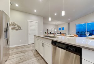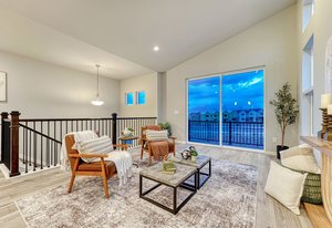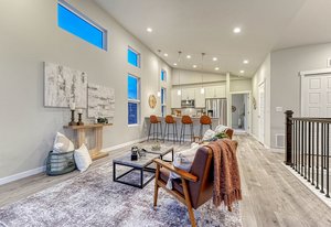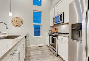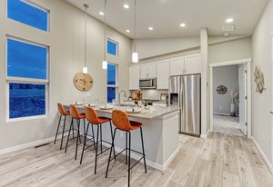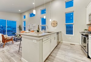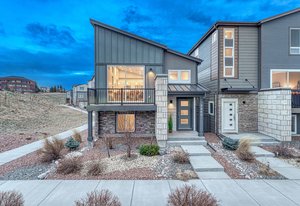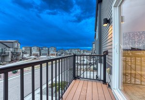 Good things come in two! On a coveted corner lot, stands a charming two-story urban home with two bedrooms, two bathrooms, two balcony's and a two-car garage—perfect for modern living. Inside, the living area is bathed in light with mountain views that take your breath away, castle-high ceilings, large balcony and sleek luxury vinyl plank floors. The kitchen, with its white maple cabinets, quartz countertops, and gas cooktop, is a chef’s dream. The primary suite offers a private balcony, a walk-in closet, and an ensuite so spa-like, it feels like a retreat. Downstairs, the second bedroom, bath, and storage space await, alongside the garage. It's the kind of place where a new chapter can begin. Make this one your happily ever after today!