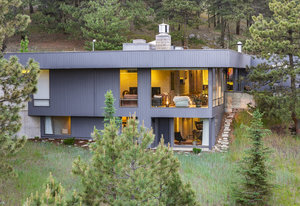 LOCATION! Situated at the bottom of Sunshine Canyon, just above Mapleton, this beautiful Mid-Century Modern has it all: Walk/run to downtown, main-level primary suite, 4 bedrooms, 40 very private acres, yet only 4-5 minute drive to downtown Boulder and the Pearl Street Mall area. The clean Bauhaus-style mid-century modern architecture is a Mid-Century aficionado's dream home. The form-follows-function simplicity of design, construction quality, and clean lines make this home a very rare find. Its location makes it even more exceptional. The floor-plan lives like a single-story ranch home with two bedrooms on the main level, with sunlight walk-out lower level with an additional 2 bedrooms and a full bath, for additional family members or guests. Wake-up to silence and inspiring views. One of the lower-level bedrooms is currently being used as an office. The window placement, and the placement of the home in general, takes into account the weather, the natural setting, and the extensive views to the Boulder-Denver corridor to Denver. The home is thoughtfully and carefully placed with its back into the forest, into the North West, with the large view windows facing South-East. The home is flooded with natural sunlight during the daytime. The solid construction structure is built to last many generations, smooth level 5 drywall throughout, minimalist window frames and commercial-grade construction and structural techniques used throughout. This home is a gem. Move-in ready. It is priced to allow you customize finishes to your own personal taste.