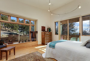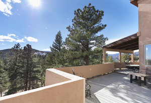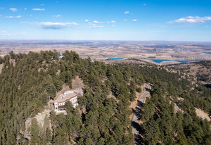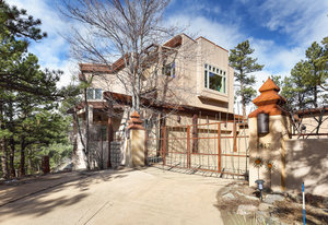 Designed and built by a distinguished Boulder architect as his personal residence, this exceptional two-story home with separate guesthouse showcases unmatched craftsmanship and thoughtful design. Nestled on 35 acres in the coveted, gated Buckingham Hills community, this hidden oasis is one of only nine luxury residences sharing 300 acres of private open space, perfect for hiking and exploring just outside your door. Enjoy vibrant xeriscape gardens, striking rock outcroppings, and breathtaking views of the Continental Divide and Boulder city lights, all just 15 minutes from Broadway.The main and guest residences are thoughtfully separated by a paved, walled courtyard, offering privacy while maximizing enjoyment of the serene surroundings. Both face south, bathing interiors in natural light, and are adorned with elegant artistic iron gates.The main home features soaring ceilings, an inspiring entryway, and a spacious living room with a wood-burning fireplace. The gourmet kitchen boasts custom maple cabinetry, granite counters and backsplash, Sub-Zero refrigerator, Dacor 6-burner gas cooktop, convection wall oven, and beamed ceilings. The dramatic dining room, powder room, and two en-suite bedrooms-including a primary suite with loft, luxurious 5-piece bath, soaking tub, oversized shower, and private sauna-complete the home. Outdoor balconies and covered decks invite year-round enjoyment of the views.The guesthouse includes a large office, en-suite bedroom with tumbled marble bath, library, and a recreation room with wet bar and balcony. Additional amenities include a 3-car garage, mudroom, laundry, radiant heat, central vacuum, 1,500-bottle wine room, copper accents, rain chains, potting area, radon mitigation, and two 4,200-gallon cisterns. A true Boulder retreat-private, peaceful, and minutes from dining, shops, and culture. The current list price is well below the County assessed value.