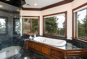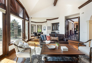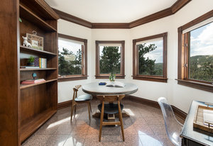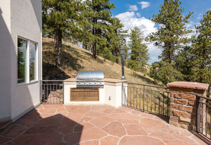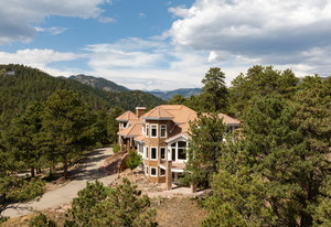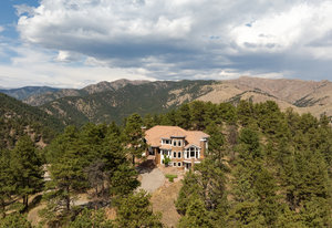 Nestled in Buckingham Hills, this exclusive luxury mountain estate is just 14 minutes from downtown Boulder. On 35 acres and bordering national forest, it offers stunning views and access to over 300 acres of private open space. A lighted private drive leads to a circular drive, blending natural beauty with refined living. Inside, the 7,825 sq.ft. custom home welcomes you with soaring ceilings and marble foyer. The formal living room features a fireplace, vaulted ceilings, and custom paneled walls. Adjacent, the circular library's floor to ceiling windows frame the city's twinkling lights. The formal dining room, with built-in cabinetry, seamlessly connects the family room and chef's kitchen. An elegant European inspired gourmet kitchen boasts custom cabinetry with inserts, Wolf range with pot filler, Sub-Zero fridge, double wall ovens, granite surfaces, travertine flooring and a walk-in pantry. It opens to a wraparound flagstone patio with built-in BBQ. The connected family room has vaulted ceilings, walnut floors, fireplace, breakfast nook and wet bar, flowing out to the patio. A marble powder room and laundry complete the main level. The primary suite offers high ceilings, a reading library and views. It's en-suite bath includes marble finishes, dual walk-in closets and vanities, a bidet, jetted tub and a large shower with body sprays. A peaceful private study is nearby with built-ins. An en-suite guest bedroom on it's own level includes a cozy reading room with captivating views. Luxurious living continues on the lower level with a rec room complete with wet bar and fireplace, a media room with Murphy bed, a home gym and two ensuite guest bedrooms. Attached and heated 4 car garage with cabinetry. Flagstone patios, radiant floor heat, intercom system, central vacuum & new modern can lighting. World class hiking and biking just out your door. This estates blends nature, luxury and proximity to downtown making it an idyllic retreat for adventure and culture.
