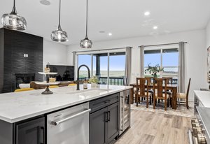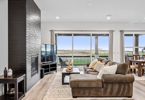 Welcome to this stunning walkout ranch home, backing onto the luxurious TPC Golf Course and a serene pond, with breathtaking Mountain View's. This patio style home is packed with custom upgrades. This home features an open floor plan with 3 bedrooms and 2 bathrooms, living area with a tile surround fireplace, kitchen boasts a large center island, upgraded custom cabinets, quartz countertops, and beautiful tile extending to the ceiling above the gas range. Built-in speakers are installed in the living area, primary bedroom, and deck. Dining area leads to an 8-foot-tall slider that opens 8+ feet wide to your private deck. The oversized primary bedroom includes 2 walk-in closets with custom built in's, a soaking tub, and a beautiful tile shower. The walkout basement is ready for your personal touch, with rough-ins for a wet bar and future bath. Large covered patio perfect for entertaining. The TPC at Heron Lakes is one of Colorado's premier neighborhoods, offering over 8 miles of trails, several lakes, and access to Lonetree Reservoir (additional fees required) for fishing, boating, paddleboarding, and more. The community also features a private health club, a pool with a swim-up bar, 2 restaurants, and much more. Golf membership is discounted to $40,000 for the first 30 days after closing. For more information about the community and its amenities, or to schedule a tour of the facilities, please contact the agents.
