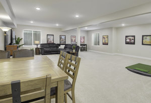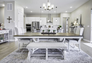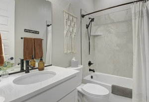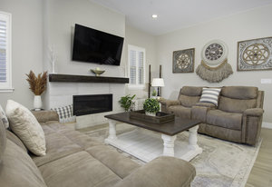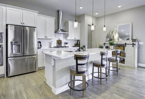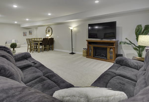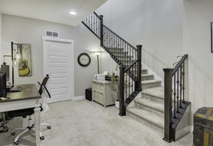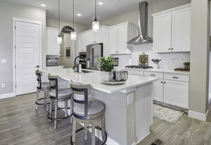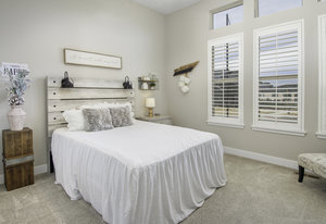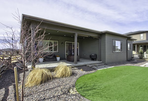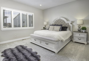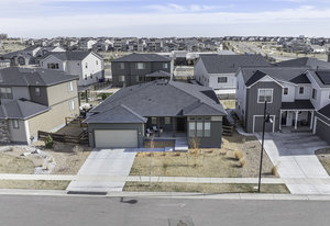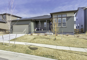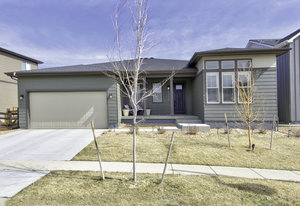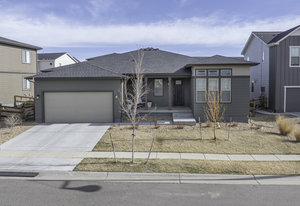 Discover this stunning ranch-style home, featuring 4 bedrooms, 4 bathrooms, a finished basement, and a spacious 3-car garage. Impeccably maintained and designed with model-home appeal. Inside this home designer touches enhance every space. The open floor plan boasts a gourmet kitchen with a pantry, large island, quartz countertops, stainless steel appliances, and a gas cooktop. The dining area seamlessly connects to the inviting living room, complete with a cozy fireplace. Plantation shutters adorn the main level, adding elegance and charm. The primary suite is a private retreat, featuring a luxurious 5-piece bath with a double vanity, a spacious walk-in shower, a stand-alone soaking tub, and a generous walk-in closet that conveniently connects to the laundry room. Two additional bedrooms, a full hall bath, and a guest powder room complete the main level. A beautifully crafted wrought iron staircase leads to the finished basement, where you'll find a sprawling recreation room, a cozy sitting area, a fourth bedroom, and a full bath. An unfinished space offers ample storage. Enjoy the outdoors from the charming covered front porch, where you can take in the mountain view, or step out back to a spacious covered patio overlooking a professionally landscaped, low-maintenance turf yard. This home is ideally located just one street from The Cove, Barefoot Lakes' premier community hub, offering easy access to the pool, fitness center, pickleball courts, and more. Just a few blocks away, you'll find two scenic lakes perfect for paddleboarding, kayaking, canoeing, and fishing. With miles of trails and parks woven throughout the community, this home is a dream for outdoor enthusiasts-all within walking distance. Don't miss your chance to make this exceptional home yours!