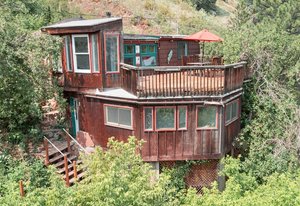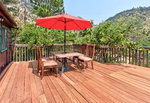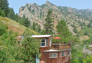 Perched high on the hillside of Eldorado Springs, this one-of-a-kind home blends historic charm with modern convenience. Originally built as a cozy cabin in 1907, the living room retains its rustic character, while a thoughtful expansion in 1950 added space and functionality. Behind the home, a detached studio offers endless possibilities-perfect as a creative workspace, home office, or guest retreat-complete with a generous storage closet. The breathtaking panoramic views of the surrounding mountains and valley provide a stunning backdrop for daily life. Designed for the serious mountain sports enthusiast, this 2-bedroom, 1-bathroom home offers a truly immersive outdoor experience. The expansive 231-square-foot deck is the perfect spot to soak in the sunrise, unwind at sunset, or simply take in the fresh mountain air. With Eldorado water service and direct access to Eldorado Canyon State Park, privacy and natural beauty are at your doorstep. The home's secluded, foot-access-only location ensures peace and tranquility while remaining just across from the Eldorado Springs pool and moments away from the park's entrance. Looking for additional opportunities? The neighboring home to the east, 265 Eldorado Springs Drive, is also available - an ideal chance to own two properties side by side or invest in a rental. See MLS #1028061 for details. Don't miss out on this rare mountain retreat-schedule your showing today!