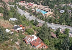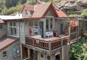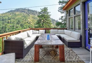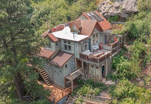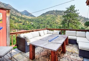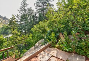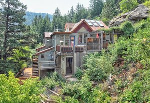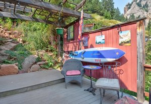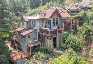 A One-of-a-Kind Mountain Retreat in Eldorado Springs. Searching for a home that embodies privacy, serenity, and character? Look no further! Nestled on a picturesque hillside in Eldorado Springs, this unique residence offers an unparalleled connection to nature, accessible only by foot for the ultimate sense of seclusion. Designed for the true Colorado outdoor enthusiast, this home backs directly to Eldorado Canyon State Park, offering world-class hiking and rock climbing right in your backyard. Just across the street, the historic Eldorado Springs Pool provides a refreshing retreat. Over the years, this home has been thoughtfully and creatively remodeled, blending rustic charm with modern touches. Multiple decks and outdoor spaces invite you to take in the breathtaking views and enjoy the natural beauty surrounding you. One special perk-pure Eldorado Spring water is piped directly into the home! The upper level is dedicated to a stunning primary suite, featuring a cathedral ceiling with skylights, a private patio, and a luxurious soaking tub. The main level is warm and inviting, with a cozy living room that opens to the outdoors, a newer wood-burning stove, a dining room with access to a spacious deck, and a kitchen complete with a new tile floor, backsplash, moveable dishwasher, refrigerator, electric range/oven, and pantry. A 3/4 bath completes this level. Downstairs, you'll find an office area, another 3/4 bath, and two additional bedrooms. One bedroom boasts a natural rock wall and a private patio, while unique architectural elements such as a rock outcropping in the hallway and three charming church doors add to the home's distinctive character. With an effective year built of 1990, this home is a rare gem. Looking for additional space or a rental opportunity? The neighboring home at 269 Eldorado Springs Drive MLS#1028063 is also available for purchase. Don't miss this incredible opportunity to own a truly special piece of Colorado!
