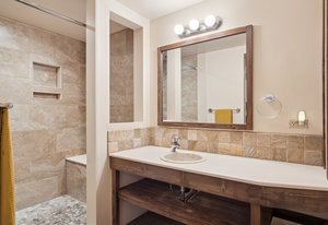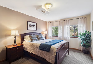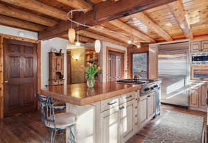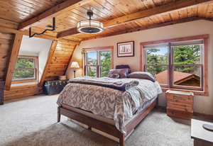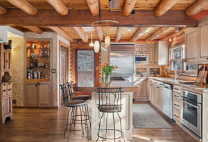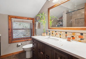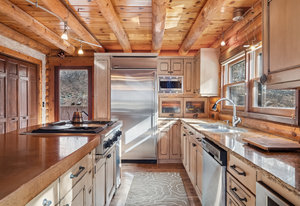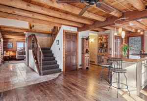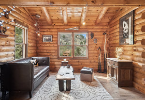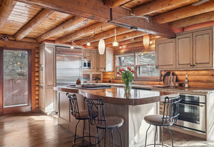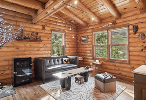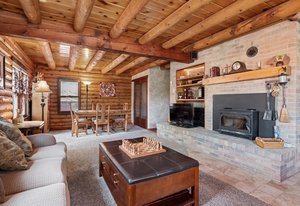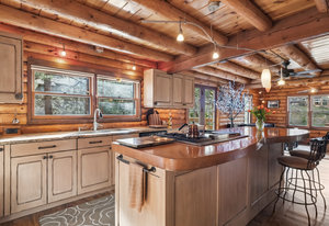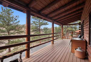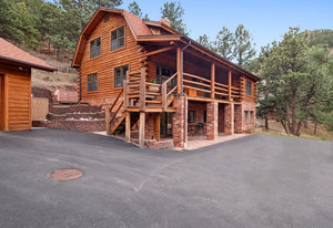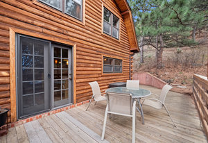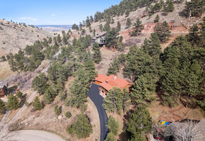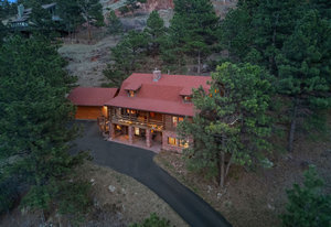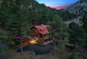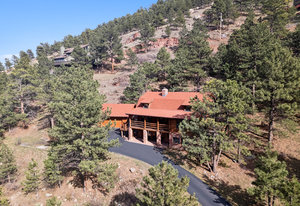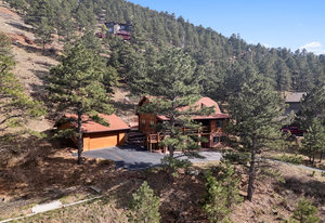 Tucked into a quiet hillside setting above Boulder, this 2957 SF mountain residence in Pine Brook Hills delivers the best of Colorado living-rustic character, thoughtful upgrades, and nearly an acre of forested privacy. Just minutes from town, it offers the rare convenience of quick access to Boulder while feeling worlds away in a peaceful mountain enclave. Knotty pine log walls and hand-hewn ceiling beams create authentic warmth throughout, complemented by practical improvements including a dual gas furnaces & energy-efficient construction. The bright main level is centered around a designer kitchen by an award-winning professional, featuring custom Osburn cabinetry in a lightly distressed, knife-cut Shaker finish, granite and concrete countertops, a stainless sink, and premium appliances. Dining area flows effortlessly to a wraparound deck-ideal for outdoor dining, enjoying the views, and soaking in the privacy-while a separate living room with a wood-burning fireplace adds inviting ambiance. Main level includes remodeled full bath & laundry-sorting closet with opaque glass doors. Upstairs, the primary bedroom provides a cozy retreat with an electric fireplace & dual closets, paired with a spa-style bath finished in Crema Marfil marble and a tiled shower. Two additional guest bedrooms share a vaulted ceiling and offer flexibility for visitors, remote work, or hobbies, complete with walk-in closets & built-ins. The lower level expands the home's versatility with a fully updated and accessible 1100 SF walk-out apartment featuring a private entrance and flagstone patio, full kitchen, living area with a freestanding wood stove, spacious bedroom, office, tiled bath, and laundry. Outside, enjoy a fenced backyard, tiered landscaping & resurfaced driveway with level parking. The oversized two-car garage is exceptionally functional with finished attic storage. A rare Boulder-area mountain retreat offering comfort, craftsmanship, and convenience in a welcoming neighborhood