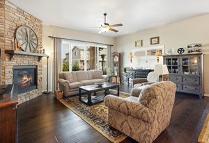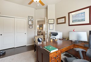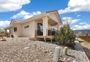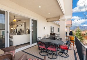 Stylish & Spacious Townhome with Custom Finishes Throughout. Welcome to this beautifully designed 3-bedroom, 3-bath townhome, complete with a versatile study and a fully finished basement that's perfect for entertaining. The main level showcases rich wood floors and a stunning gourmet kitchen featuring a gas range, granite countertops, a large walk-in pantry, and pendant lighting over the expansive center island—ideal for both cooking and gathering. Unwind in the luxurious primary suite, which boasts a spa-inspired walk-in shower with dual shower heads, a generous walk-in closet, and the convenience of direct access to the laundry room from the owner's closet. Step outside to enjoy the covered rear patio with remote-controlled sun shades—perfect for relaxing in any weather. Downstairs, the custom wet bar in the finished basement offers an inviting space for game nights, movie marathons, or casual evenings with friends. Thoughtfully upgraded and move-in ready, this home combines comfort, functionality, and style in every detail. Located in a gated community near the Air Force Academy, this home offers easy access to I-25, top-rated Academy District 20 schools, and a wealth of nearby shopping, restaurants, and entertainment options.
