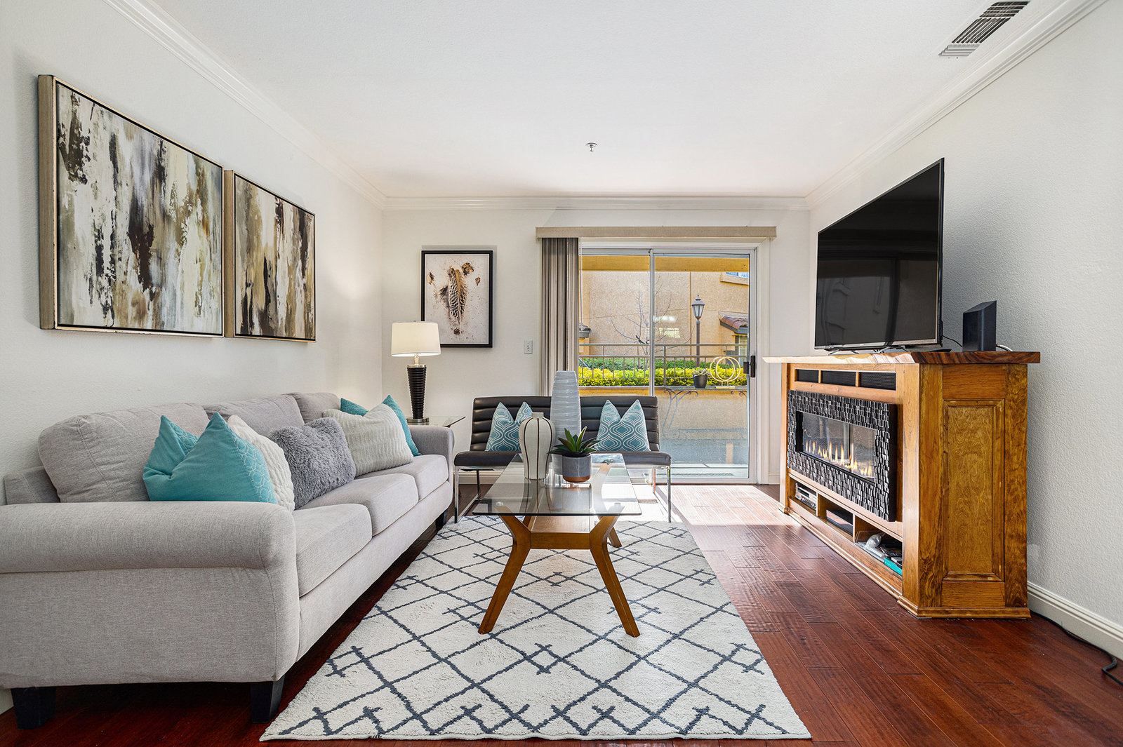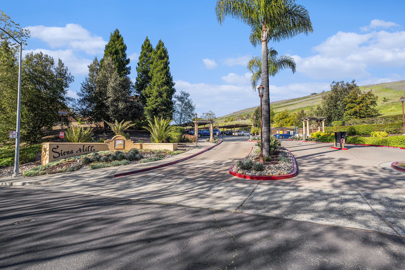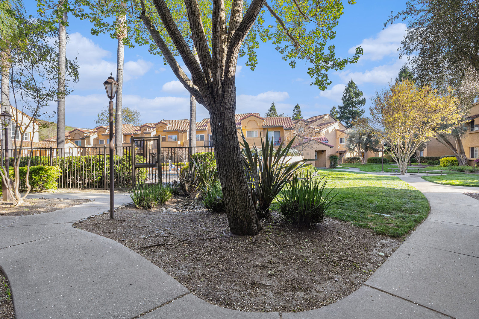 'Siena Hills' ground floor condo, completely one level and updated throughout. Open floor plan w/ 2 spacious bedrooms, 2 full bathrooms, walk-in closet, freshly painted interior, hardwood floors, brand new carpets, updated kitchen and baths, generous covered patio w/ extra storage closet off the main living area offering views of greenbelts and common areas. Electronic Security gate, w/ 2 assigned parking spaces, (one is covered), great location for EZ freeway access and community gathering spaces. Enjoy being minutes from the City Center Shops/Restaurants at Bishop Ranch, Canyon Lakes Golf Course, Club Sport, San Ramon Central Park, Iron Horse Trail and award winning San Ramon schools. Savor the serenity of a well cared for, premium community perched atop a hill offering privacy, security, wide ranging common areas, refreshed community pool, spa, fitness & more. No rental restrictions, making it a great choice for buyers and investors alike. This one has it all!!