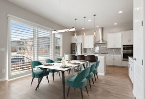 Chandelier in dining area.