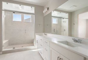 Rechargeable remote controlled under-counter lights in kitchen + primary suite.