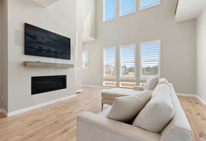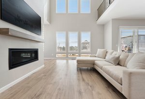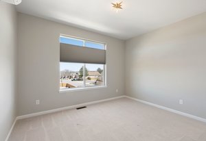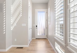 Plantation shutters and black-out shades.