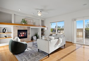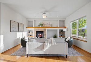 Downstairs, the fully finished walk-out basement offers even more room to unwind, complete with a second fireplace and direct access to the stunning backyard. The outdoor spaces have been thoughtfully reimagined—featuring a composite deck off the kitchen with an UnderCover ceiling system and a stamped concrete patio below, connected by a custom wrought iron spiral staircase. Whether you’re grilling, entertaining, or simply watching the sky change colors, this space was designed to be lived in and loved.