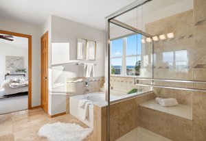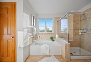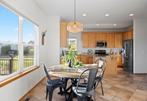 The main level blends functionality with comfort: a formal dining room sits just off the living area, while the eat-in kitchen provides the ultimate backdrop for morning coffee or sunset dinners, with unobstructed views that make everyday moments feel extraordinary. A gas fireplace anchors the cozy family room, and hardwood flooring flows throughout.