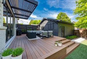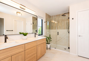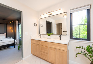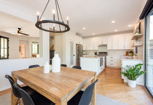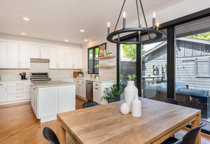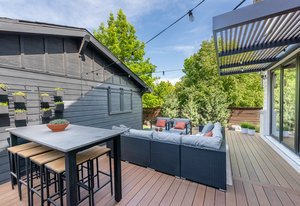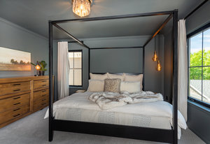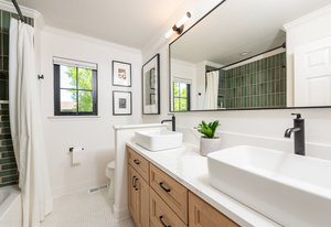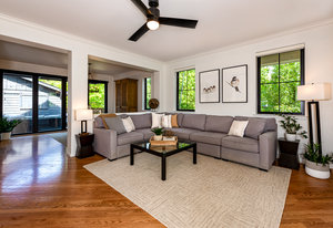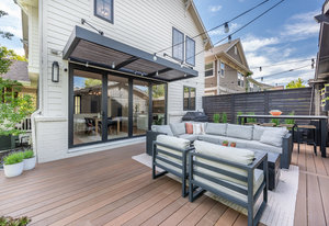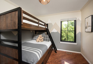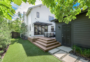 Prepare to be amazed by this exquisitely remodeled home, perfectly situated on a prime corner in Eastbridge—one of Central Park’s most coveted neighborhoods. This turnkey residence has been thoughtfully updated from top to bottom, showcasing fully renovated baths and kitchen, high-end finishes, and a spectacular backyard oasis. From the moment you arrive, you’ll be greeted by all-new windows and doors and an inviting wrap-around front porch. Step inside to discover solid oak floors and a spacious living room, seamlessly connected yet distinct from the elegant dining area. The dining space opens to an incredible backyard retreat through a custom stacking slider, creating a true indoor-outdoor entertaining experience. The backyard is perfect for grand gatherings or dining under the stars with a durable elevated deck, hidden tv nook, and large turf yard shaded by mature trees. The show-stopping kitchen has been meticulously curated for both beauty and function, showcasing a central island with luxurious Taj Mahal quartzite, abundant soft-close white cabinetry, a 5-burner gas range with double oven, and stylish display shelving. A dedicated home office features a built-in desk and ample storage, while the nearby powder bath exudes timeless charm. Upstairs, the serene primary suite offers a brand-new en-suite bath with a frameless glass shower and walk-in closet. Two additional bedrooms with hardwood floors and a refreshed full bath complete the upper level. The finished basement is an inviting gathering space, featuring a cozy fireplace and executive-style built-ins—ideal for game nights. A versatile bonus room is currently staged as a second office, but often used as a guest bedroom, complete with an egress window and closet area. Enjoy unbeatable walkability to F-15 pool, Shops at Eastbridge, Stanley Marketplace, and the expansive 80-acre Central Park. This is the home and neighborhood you’ve been waiting for!