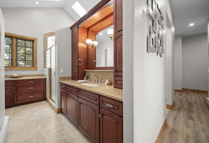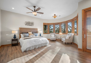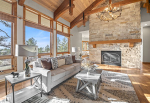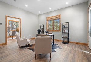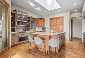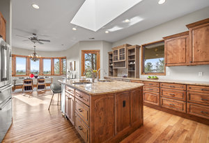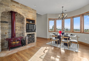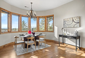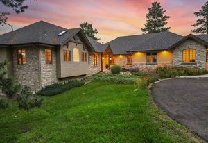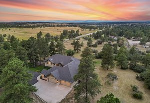 Perfectly positioned just steps away from Douglas County, only 12 miles from Castle Rock and downtown Parker, and 5 miles from Elizabeth, this stunning 10-acre estate offers privacy, convenience, and breathtaking mountain views. This custom-built walk-out ranch has been meticulously crafted by a builder who has poured years of expertise and passion into every detail. Blending craftsmanship with comfort, the home showcases soaring hand-cut cedar beam ceilings, a floor-to-ceiling stone fireplace, and expansive picture windows that frame stunning mountain vistas, creating an inviting and elegant living space. Designed with versatility in mind, this home effortlessly accommodates a variety of lifestyles. For work-from-home professionals, the main level includes two offices with a shared private entrance offering both convenience and privacy. For multi-generational living, the lower level is ideal—complete with a private driveway, separate entrance, and three bedrooms, including a second primary suite with ensuite, full kitchen, pantry, and laundry. For equestrian enthusiasts, the neighboring Indigo Hills Equestrian boarding facility offers top-tier full-service horse boarding with amenities such as indoor and outdoor arenas, round pens, turnout areas, heated stalls and riding trails—providing a home for your horses without the upkeep of a personal barn. Additional notable features include an expansive 4-car garage, radiant in-floor heating, and instant hot water throughout. The gourmet kitchen is a chef’s dream, equipped with Bosch appliances, granite countertops, and an adjacent formal hearth room with a wood-burning stove. The luxurious primary suite boasts a private covered deck, a travertine fireplace, and dual ensuite bathrooms. Outdoor living is equally impressive, with a stunning covered deck featuring a built-in fire pit and panoramic mountain views—perfect for entertaining or unwinding in a peaceful setting.