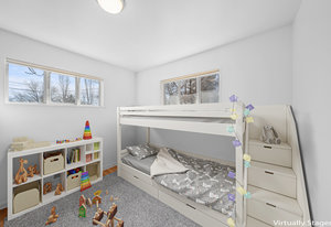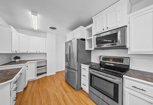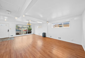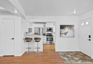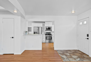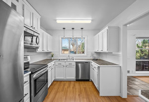 Step inside to an inviting, light-filled layout designed for both relaxation and entertaining. The open concept living area flows effortlessly into the kitchen featuring stainless steel appliances and white cabinetry. The main level offers two bedrooms and a full bath.