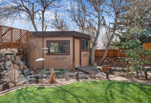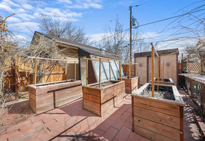 The beautifully landscaped yard is designed for low maintenance and year-round enjoyment. Artificial turf keeps the space pristine, while a covered back patio creates a serene setting for outdoor dining and gatherings. All will love the raised beds and greenhouse, perfect for growing fresh produce and flowers. Additional features include four storage sheds, a spacious garage, and a driveway with ample room for additional parking.
