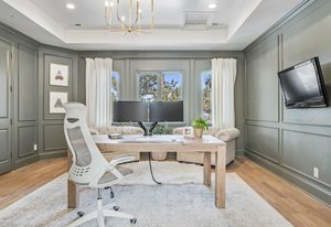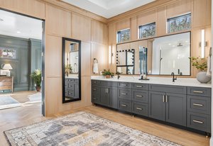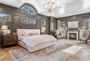 Designed for entertainment, the lower level is a retreat in itself—highlighted by a state-of-the-art soundproof theater with a 144-inch screen, a spacious gym, and an expansive recreation room with a wet bar and a custom wine vault. The primary suite is a sanctuary of style and comfort, featuring custom wall paneling, herringbone-patterned floors, and a spa-like bath with a freestanding tub and an oversized shower.