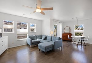 The primary suite is bright and inviting, featuring a custom closet system and an ensuite bath accented with modern tilework and floating shelves. As a quiet end-unit with only one shared wall, the home offers added privacy and a sense of calm that’s hard to find. Details like engineered wood floors, adjustable top-down/bottom-up blinds, and a private deck enhance daily living, while the attached one-car garage with a 220-volt outlet and ample additional parking round out the functionality. With two bedrooms and two baths, this updated condo blends thoughtful design with a peaceful suburban setting—refreshed, refined, and ready for its next chapter.