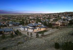 Newly completed, this 2024 custom-built estate, nestled within the prestigious Ravenna community, is the epitome of refined living and sophisticated design. Situated on a .77 acre site with a stunning backdrop of Pike National Forest and the 3rd hole of the Ravenna golf course. The walk-out design frames breathtaking views of Chatfield Reservoir and the Denver skyline, while the private setting ensures tranquility. From the welcoming glow of the floating gas firepit to the dramatic two-story foyer with its anchoring three-story stone wall, every detail exudes elegance. Architectural details include floor to ceiling windows, dramatic accent walls, incredible light fixtures, soaring 25 foot ceilings and wide plank white oak flooring. The chef's kitchen is a culinary masterpiece, equipped with a large center island, Subzero refrigerator and freezer, a six-burner Wolf range with double ovens, a Cove dishwasher, and a pasta pot filler. A separate back kitchen adds convenience with an Asko dishwasher and ample shelving. The main-level primary suite is a luxurious retreat, complete with a spa-like bathroom featuring a multi-head shower, heated floors, and a deep soaking tub. Upstairs, two additional en-suite bedrooms and a loft overlooking the two-story great room provide comfortable living spaces. The lower level is an entertainer's dream, boasting impressive ceiling heights, a workout room, and a versatile entertainment area. An infrared sauna and cold plunge offer a spa-like experience within the comfort of your home. Indoor/outdoor living extends to the west with a large entertainment area complete with dining space, covered patio, firepit and sodded backyard play space. Experience the ultimate in luxury living in this exceptional Ravenna estate.