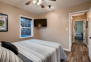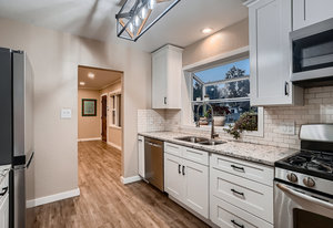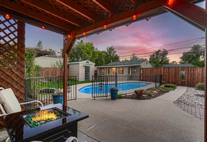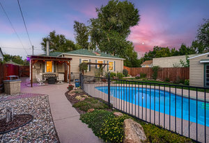 Rare Ranch home that really has it all!! Truly Pottery Barn cute, totally updated, newer kitchen, with flooring on main level. Two bedrooms, and updated full bath on main level. Primary suite on lower level with gorgeous private bath including blue tooth surround sound and mood lighting. The Backyard is fabulous for entertaining or just enjoying the oasis. Lovely landscaping with lighting, water feature, and incredible pool using solar for heating. Cameras and alarm for pool safety. There is a security cover for pool in the winter. Check out the garage/workshop get away with loft space. Complete with cabana/tiki bar. Perfect for entertaining, feeling like you are on vacation right in your own backyard. Newer HVAC. White picket fence encloses this perfect American Dream home.