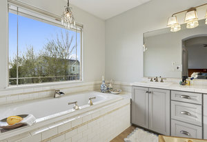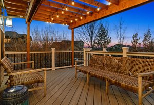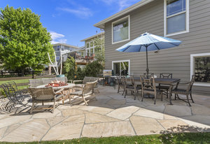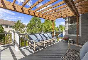 Sun-drenched and full of charm, this beautifully maintained home sits on a fenced corner lot on a quiet cul-de-sac, offering mountain views and exceptional curb appeal in Parker’s sought-after Idyllewilde community. Thoughtfully designed with modern touches, this home showcases expansive windows bathing the interior in natural light, soaring ceilings and designer lighting. The home features rich 5” Hickory hw flooring, custom trim, solid core doors and Plantation shutters. The gourmet kitchen includes a center island, granite countertops, custom cabinetry w/seeded glass accents, soft-close drawers, stone backsplash and dual sinks. Stainless steel appliances include a Wolf professional gas range with double ovens, a Sub-Zero refrigerator and microwave and dishwasher. A cozy family room with gas fireplace flows seamlessly into the bright breakfast nook and kitchen. The dining room impresses with floor-to-ceiling windows and a statement light fixture for elegant entertaining. A rare main-floor primary suite is a serene retreat with vaulted ceilings, southern sunlight, and gas fireplace. The luxurious bath boasts a jetted tub, timeless subway tile, and dual walk-in closets. Upstairs, two bedrooms share the space with an open loft—perfect as-is or easily converted into an additional bedroom. The garden-level basement offers a spacious rec room, game area, fitness zone and guest suite with full bath. Step outside into an entertainer’s paradise: a lush, maturely landscaped backyard with flagstone patio, dining area, gas firepit, rock fountain, and extensive yard space. Multiple decks, including front and side porches and an elevated back deck, provide ample outdoor living areas. Enjoy the vibrant Idyllewilde lifestyle with a community pool, fitness center, parks, walking trails, and the beloved Fika Coffee shop. Located within the top-rated Douglas County School District and just minutes from historic Downtown Parker and miles of scenic trails—this home truly has it all.