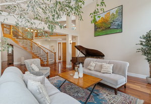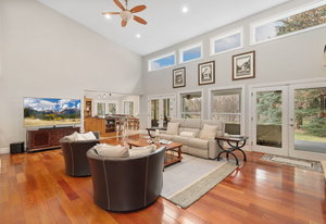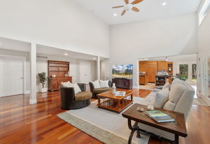 Beyond the main residence, a separate in-law suite offers independence with a private two-car garage, stylish living room, full kitchen, laundry area, and spacious bedroom accommodating a king-size bed.