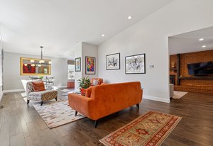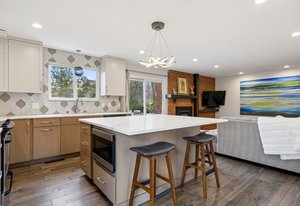 Nestled in a prime location near the Denver Tech Center, this stunningly updated ranch-style home offers the perfect blend of modern updates, thoughtful design, and incredible outdoor living. With easy access to I-25, Cherry Creek Schools, top-rated restaurants, grocery stores, and the High Line Canal trail system, the convenience of this home is unmatched. Ideal for family living, the main level features a spacious master suite, two additional bedrooms, and two beautifully renovated bathrooms. The light-filled, open floor plan flows effortlessly from the remodeled kitchen into the dining and living areas. Vaulted ceilings and expansive picture windows in the formal living room create a bright and airy atmosphere, while the cozy family room, anchored by a striking gas fireplace with custom metal shelving, adds warmth and character. The remodeled kitchen is a true showstopper, featuring quartz countertops, sleek cabinetry, stainless steel appliances, and a spacious sit-in island—perfect for cooking and entertaining. The fully finished basement, completed in 2023, provides an additional level of luxury with a media area, custom built-in entertainment center, luxury vinyl plank flooring, and a private bedroom with an ensuite bath. Thoughtful updates throughout include new doors, spacious closets with built-in storage, a new AC unit (installed in 2024, system fully serviced), and energy-efficient windows. Beyond its beautiful interior, this home is an outdoor oasis. The expansive backyard backs to a gulch and is surrounded by mature trees for ultimate privacy. Enjoy Colorado’s breathtaking evenings around the custom firepit or host summer gatherings on the spacious patios, complete with a gas line for your grill (grill included!). Additional features include EV charging capability (220V outlet), a new garage door, epoxy-coated garage floors, and a large laundry room with extra storage and a utility sink.