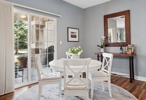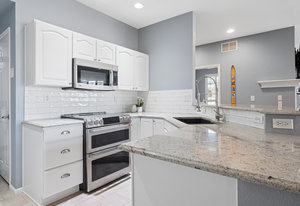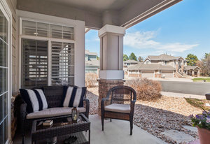 Discover effortless living in the highly desirable Pineridge community of Castle Pines, nestled beside The Ridge Golf Course and overlooking the scenic beauty of Daniels Park. This impeccably updated end-unit townhome offers the perfect balance of tranquility and modern comfort. Step inside to find a thoughtfully renovated interior where timeless design meets everyday functionality. The kitchen has been enhanced with fresh white subway tile, beautifully complementing the existing slab granite countertops, stainless steel appliances, and white cabinetry with pull-out drawers and updated hardware. A new GE Cafe induction stove and convection double ovens bring elevated performance and sleek efficiency to this stunning culinary space. The inviting living room centers around a modernized stone gas fireplace, while plantation shutters and 5” luxury vinyl hardwood flooring add a touch of refined elegance throughout. The main level features a secondary bedroom with a walk-in closet and a fully remodeled bath, plus a dedicated office complete with a custom Elfa built-in desk—ideal for working from home. Upstairs, the spacious primary suite offers a true retreat with two generous walk-in closets, including one with custom Elfa shelving, and a spa-inspired bath featuring granite counters, dual sinks, and a walk-in shower. The included stairlift system ensures the upper level remains easily accessible for all. Additional conveniences include a 2020 HVAC upgrade (furnace and AC) controlled by an Ecobee Nest thermostat. Outside, the current owners have refreshed both garden beds and created a peaceful escape on the private side patio off the kitchen. The HOA has taken great care of the community with a new roof in 2019, and fresh exterior paint completed in summer 2024. Enjoy sweeping views of Castle Rock and Pikes Peak in this exceptionally quiet and well-maintained neighborhood, just minutes from trails, golf, shopping, and I-25. This is more than a home—it’s a lifestyle.