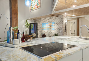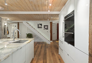 picture windows. Beautiful reclaimed hardwood floors. The William Ohs kitchen is incredible! Large center island with