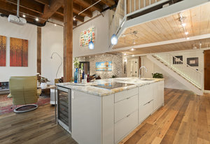 custom raised decking. Historic meets modern in this one-of-a-kind loft. Built in 1896, this building is an iconic structure in