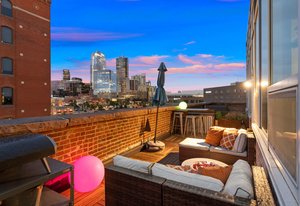 Watch the city lights glow over downtown Denver with head-on D&F Clock Tower views from your large terrace with