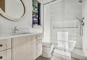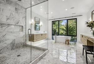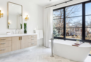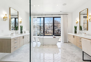 Experience the epitome of modern living at 2475 S. Saint Paul in Observatory Park. This 5-bedroom, 7-bathroom home combines contemporary design with sophisticated living spaces, offering the perfect balance for living and entertaining. Features include floor-to-ceiling windows throughout with custom window treatments, white oak flooring, beamed ceilings, and a striking floating staircase. The open floor plan flows with ease and includes a private office with custom cabinetry and fireplace, sun-lit dining room with wine wall and fireplace, open family room with a double-sided gas fireplace, and bonus room with a wet bar and 18' multi-slide glass doors opening to the expansive bluestone patio. The sleek kitchen features a Thermador range, double dishwashers, 8 linear feet of built-in Thermador refrigeration, Miele coffee machine, and a large walk-in pantry. The mudroom comes complete with custom cabinetry, walk-in storage and a dog wash, while the stunning primary suite boasts vaulted beamed ceilings, a slab Quartz fireplace, a five-piece Italian marble bath, and a large fitted closet. Each secondary bedroom offers an ensuite bath and fitted walk-in closet. The finished basement includes a media room, exercise room, wet bar, guest bedroom, and garden-level patio. Outdoors, the private backyard features a year-round, covered, heated plunge pool/hot tub, fire-pit, built-in grill, and steel pergola. The detached garage includes a 6,500-pound lift to accommodate up to three cars. This residence truly showcases impeccable craftsmanship in one of Denver’s most desirable neighborhoods.