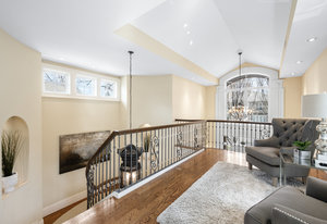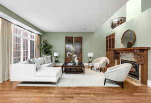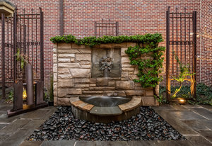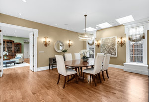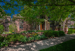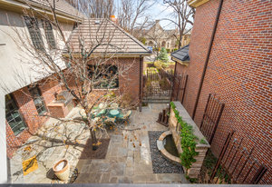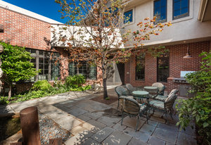 The minute you walk through the front door, you are swept away by the graciousness of this extraordinary property. This Paul Kobey built home is truly a masterpiece with meticulous craftsmanship, premier finishes, and sensational architectural style. The welcoming two-story foyer with a beautiful early American chandelier adjoins a stately custom cherrywood paneled library with a handcrafted coffered ceiling, fireplace, and floor to ceiling built-in bookshelves. Two walls of windows in the library look out on the front garden and the inner courtyard and fill the room with soft light. The jewel of this home is the private, serene inner courtyard. Enter from the garden through the Napoleonic era wrought iron gates or view this stunning living and entertaining area from any room on the main level. The formal dining room is comfortable for both intimate dining and ideal for larger gatherings. Double French doors lead from the dining room to the courtyard. The open concept layout offers a seamless flow between the kitchen, the informal dining area, and gracious living areas. The living room features a custom African wood fireplace mantle and stone surround. The kitchen has a large center island, granite countertops, and SieMatic cabinetry. Flooded with light, the inviting primary retreat is a serene escape with its own sitting area and private terrace overlooking the courtyard. The luxurious primary bath and large walk-in closet compliment the setting. The upper level features an additional ensuite bedroom currently used as an office. The lower level offers two additional bedrooms, a theater, and mirrored exercise room. Additional amenities include skylights throughout the home, an oversized 3-car garage with built-in storage and an elevator connecting all three floors. Lives like a single family home. Discover a rare opportunity to experience refined living, the perfect home for entertaining, in the coveted Cherry Creek North neighborhood.