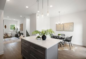 New townhomes in prime location near Olde Town Arvada and less than a half mile to dozens of restaurants, breweries, and boutiques. West Carr Townhomes consists of 20 residences with three different floorplans to suite your lifestyle. This home offers two bedrooms, 3 baths, and a 2 car attached garage. The main floor features an open kitchen with a center island, gas cooktop, great cabinet storage and open living and dining area. The private balcony off of the living area looks directly over a picturesque neighborhood park. The upper level offers a primary suite with large, walk-in closet and four piece bath and a second guest suite and full bath. Standard finishes include custom cabinetry, quartz countertops, chrome plumbing fixtures and hardware and LVT flooring. Park your vehicle and store your toys in the attached garage with plenty of room for storage. This home qualifies for the community reinvestment act providing 1.75% of the loan amount as a credit towards buyer's closing costs, pre-paids and discount points. Contact listing agent for more details. Photos are of the model unit in the same building.
