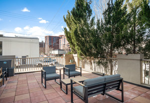 The Cherry Creek lifestyle awaits you in this lovely remodeled 2 bedroom / 2 bath condo on a quiet, tree lined block. You’ll love this freshly painted, main floor unit highlighting an open concept floor plan with an updated kitchen featuring stainless appliances, new cabinets, quartz counter tops, counter bar seating, and eat-in space. The family room, centered around a gas fireplace, opens to a private covered patio with access to a spacious, fenced in community grass area - perfect access for your pet. A second, larger patio is another option for additional outdoor entertaining and dining opportunities. The spacious Master Suite offers 2 large closets and an updated spa-like Master Bath including a double vanity and an oversized shower. A secondary bedroom offers flexibility as a private office or fitness room w/ balcony access, and a secondary bath. A large laundry room allows for a full-size washer and dryer. Complex offers several amenities, including 1 deeded parking space in the heated underground garage, large private storage space, secure bike storage, fitness facility, clubhouse, and beautifully landscaped common grounds. Walking distance to Cherry Creek Mall, Gates Tennis Center and numerous restaurants and coffee shops. Don’t miss the convenience and luxury that awaits you in this perfect turnkey condo!