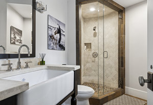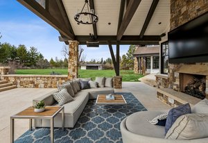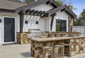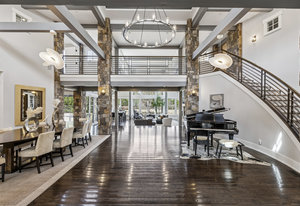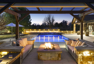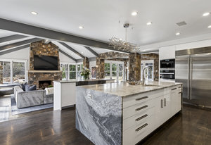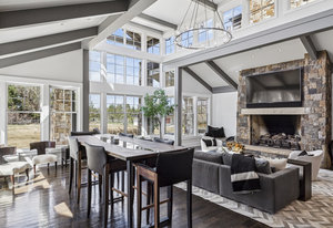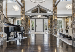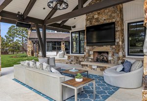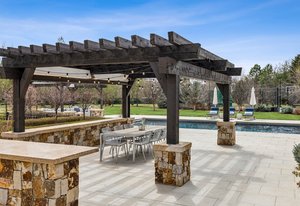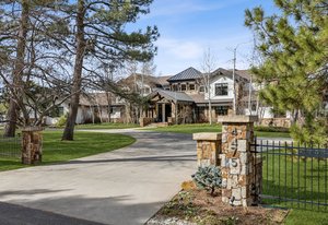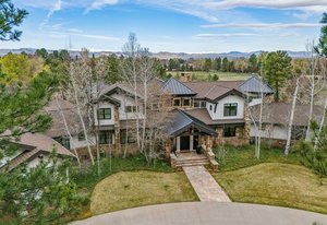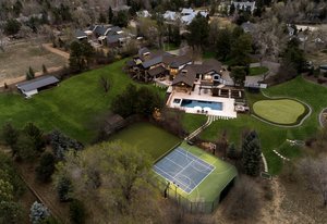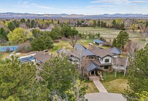 Situated on a sprawling 3.2-acre corner lot in Old Cherry Hills, this exceptional estate offers luxurious living with breathtaking mountain views. Designed for grand entertaining and effortless everyday living, the home features a soaring two-story great room with a beamed ceiling, a striking stone fireplace, and floor-to-ceiling windows that frame the picturesque grounds. The gourmet EKD kitchen boasts dual islands, top-tier appliances, and opens seamlessly to the inviting family room with a stone fireplace and French doors leading to the patio. A charming breakfast room overlooks the lush landscape, while additional main-floor highlights include two guest bedrooms, a spacious office with custom built-ins and a stone fireplace, and a well-appointed mudroom with ample cabinetry, a pool bath, and secondary laundry. Upstairs, the private primary suite is encased in windows, offering beautiful views, a cozy sitting area, a spa-like bath, and a generous fitted closet. Three additional ensuite bedrooms complete the upper level. The finished garden-level basement features a spacious family room, a temperature-controlled 400-bottle wine room, and plenty of storage. The resort-style amenities and outdoor living is unparalleled, with multiple stone patios, a covered outdoor living room with a stone fireplace, a fully equipped outdoor kitchen, a dining area beneath a pergola with electronic shades, a fire pit, a full-size tennis/pickleball court with lighting, a 5-hole putting green with four chipping boxes, and a pool and hot tub with water feature. The clubhouse, currently used as a golf simulator and gym, provides the perfect space for recreation and fitness. Additionally, the home is equipped with a geothermal HVAC system, Control4 system for seamless home automation, Lutron shades and lighting, and Sonos system providing distributed audio inside and out. This estate offers an exceptional retreat designed for luxury, privacy, and endless entertainment.