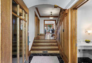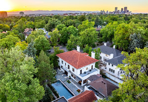 Welcome to the William E. Fisher House, this historic home was designed in 1910 by noted Fisher and Fisher Architects for William Fisher himself. The estate was created in "the Spanish style", which the brothers considered appropriate for Denver's climate, with 4 floors of living space on an oversized 13,200 SF south-facing lot. The grounds have been meticulously landscaped and the large mature trees provide the upmost privacy for enjoying the pool, hot tub, two outdoor fireplaces and spacious covered patio. A significant renovation was done in 2008 to enhance flow, function and accessibility of the home, including the installation of a commercial grade elevator to all floors. The paneled entry hall and elegant foyer serve as the circulation space to all rooms on the first level. The study with its barrel vaulted ceiling and plaster beams has French doors leading to the gardens. The extraordinary living room features more signature plaster beams and a beautifully ornate ceiling typical to Fisher's design. An oversized fireplace anchors the space and its dining area is perfect for extended families or intimate parties. French doors lead to a covered patio with views of the front yard and the stately neighboring homes on Franklin Street. The kitchen is traditional in style with creamy white cabinets and granite counters and includes everything a cook could want. It opens to the family room. A double-sided fireplace divides the family room from the charming breakfast nook with built-in banquette and 2nd refrigerator and bar area, very cozy for morning coffee. A mudroom connects the home to the attached oversized 2 car garage with surprise attic storage that holds endless potential for an artist studio, home office or the like. A third car garage is detached from the home and is plenty big for an extra car or bikes and gear. Few architectural firms have impacted Denver homes as much as Fisher and Fisher, come take a look at this noteworthy property.