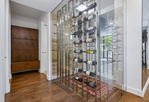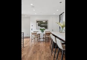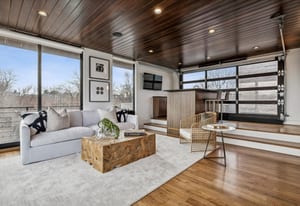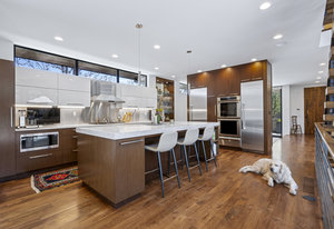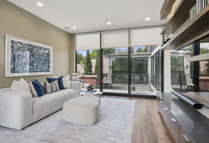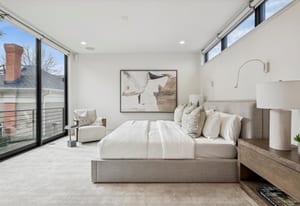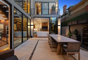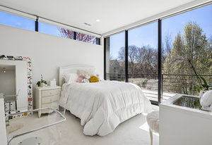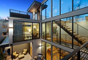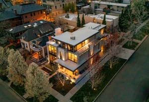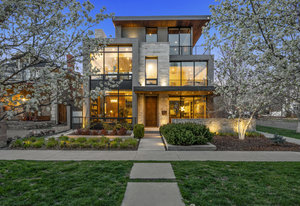 Perfectly positioned on a sun-lit corner lot in Cherry Creek North, this modern glass-and-stone residence offers a thoughtfully designed home just steps from the area’s renowned restaurants, coffee shops, and boutiques. Designed by architect Steve Barsch and custom built by Squibb Estates in 2015, the home is filled with natural light across all four levels, creating a striking presence both day and night. Sophisticated finishes include walnut floors, marble kitchen countertops and island, elevator to all 4 floors, custom built-ins, and a dramatic open-riser staircase. The primary suite features a walk-in closet and a spa-like five-piece marble bath. An additional en-suite bedroom and exceptional private office with its own balcony—complete with an adjacent closet and full bath—can easily function as a 3rd bedroom to provide flexibility for guests or family. Designed for both everyday living and entertaining, the third level is a true standout, offering a full bar and access to multiple patios. The basement level features a large gym and dedicated wine storage. Additional highlights include a private elevator, heated driveway and courtyard, a lift for a third car in the garage, Lutron lighting, home automation system, and exceptional security. Together, these features create a refined home designed for effortless living and entertaining in Cherry Creek North.