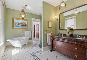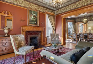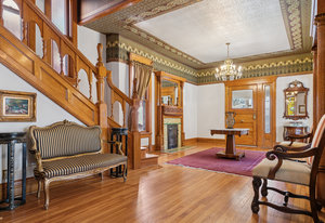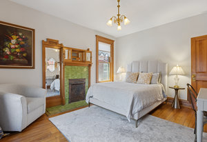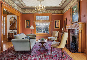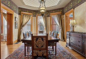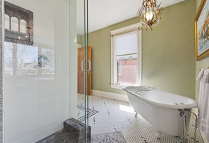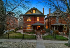 Experience the grace and grandeur of this stunning 1886 Queen Anne Victorian, perfectly situated just a half block from the beautiful 80-acre Cheesman Park. From the moment you arrive, the home's charm captivates—beginning with the stately iron fence and gate that welcome you to an inviting front porch, ideal for morning coffee or evening conversation. Step inside and be transported by the majestic entry foyer, where a sweeping grand staircase and Bradford & Bradford’s authentic wall and ceiling coverings set the tone for the rest of this unforgettable home. Every detail is a nod to timeless craftsmanship: intricate wood trim, gleaming hardwood floors, and three original portrait fireplaces with ornate mantels. This residence seamlessly blends historical elegance with thoughtful updates. You’ll find a total of five fireplaces, two classic claw-foot tubs, and period chandeliers that beautifully highlight the home’s rich past. The south side entrance gives a cool Greenwich Village vibe for the private basement entrance off of the patio and garden. This area is perfect for grilling, dining, and entertaining under the stars. The home currently features two rental units offering flexible living and income potential. The newly added basement apartment is leased through June, while the third-floor unit—with a private spiral staircase entrance, spacious outdoor deck, and peekaboo views of the mountains and Denver skyline—is currently vacant. This versatile four-level home offers endless possibilities, perfect as a spacious single-family residence or easily adaptable for multi-generational living. Whether you envision a private suite for a nanny or au pair, or simply desire separate spaces for added comfort and privacy, this home flexes to fit your lifestyle. With thoughtful layout options and room to grow, it’s a grand home that can be tailored to suit every stage of life. Whether you're looking for a magnificent personal residence, income potential, or both, this historic gem offers unmatched character, location, and lifestyle being positioned between Downtown and Cherry Creek with all the shops, restaurants and businesses they have to offer. Local favorites are Liks Ice Cream, Botanic Gardens, The Secret Garden and Potager.
