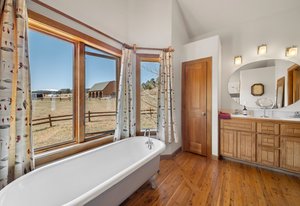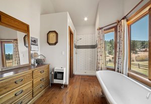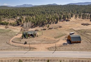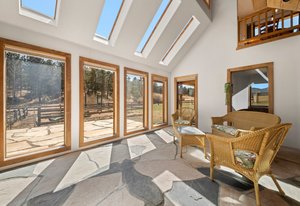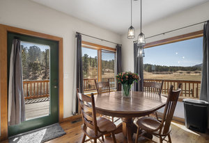 Welcome to 1740 County Road 72, a mountain contemporary home on 5+ gently-sloping, fully fenced, acres in Burland Meadows, Bailey, 80421. The 4-bedroom, 3-bath house offers 3,110 sq ft of light-filled space with snowcap views and seamless indoor-outdoor living. Enjoy a luxurious main-floor primary suite, a spacious open-concept kitchen perfect for entertaining. Large windows frame the stunning outdoor beauty. The open lower-level walkout offers a sunroom as well as the 4th bedroom and 3rd bath.