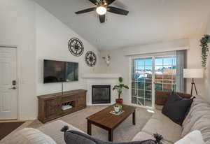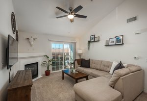 Charming and well-maintained, this 2-bedroom, 1 bath unit in the Hunters Chase Complex at Stroh Ranch offers a blend of comfort and style. The living room features vaulted ceilings and a cozy fireplace that walks out to the main balcony. The open kitchen and dining concept has newer granite counters, stainless appliances and a breakfast bar. The spacious primary bedroom includes cathedral ceilings, access to a private balcony, a walk-in closet and ensuite to the oversized full bathroom. The secondary bedroom works well as a guest room or den. The laundry features a full size washer and dryer. Two covered balconies, including a storage closet, add both convenience and extra space. Ideally located with easy access to parks, trails, and community amenities that include an outdoor pool and spa, and open parking. This is an ideal location providing easy access to Parker and Castle Rock. This home is move in ready and is a wonderful opportunity as a primary residence or investment.