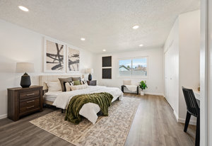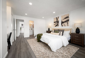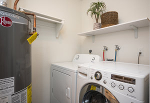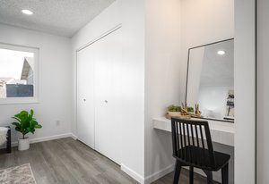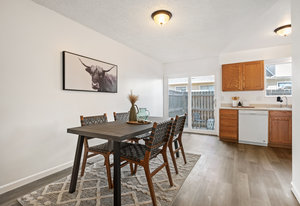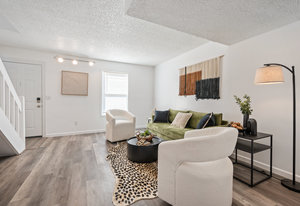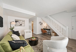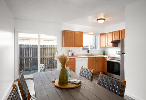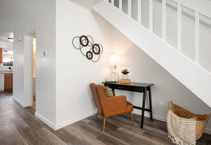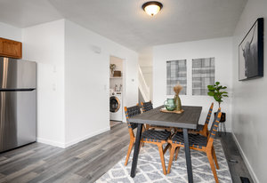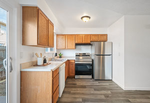 Tastefully Updated Townhome in a Quiet Location! This beautifully updated townhome offers modern style and everyday comfort in a peaceful setting. Brand-new luxury vinyl flooring flows throughout, enhancing both aesthetics and durability. The bright and sunny living room seamlessly connects to the kitchen, which features a new stove and refrigerator for a fresh, modern touch. Step outside to a private patio, perfect for outdoor relaxation. A convenient half bath and in-unit laundry complete the main level. Upstairs, you'll find a spacious primary bedroom with a built-in desk or vanity, a secondary bedroom, and an updated full bath. Additional upgrades include new windows, a new slider, fresh paint, and modern lighting throughout. Move-in ready with thoughtful updates—don’t miss this fantastic opportunity!